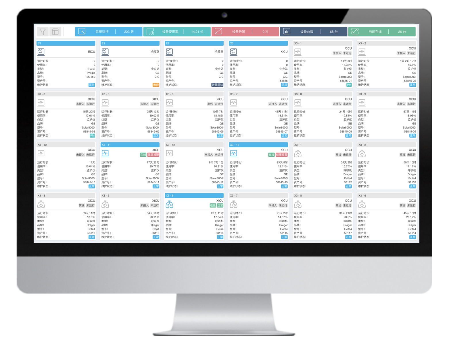 病床綁定、患者體征實時監護、精確告警、告警響應處置等